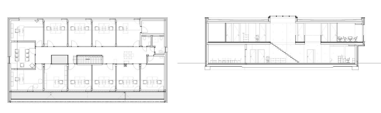 Ziel des Entwurfs war es, eine gestalterische und strukturelle Klarheit mit einem differenzierten Innenraum für eine moderne Büronutzung zu kombinieren.